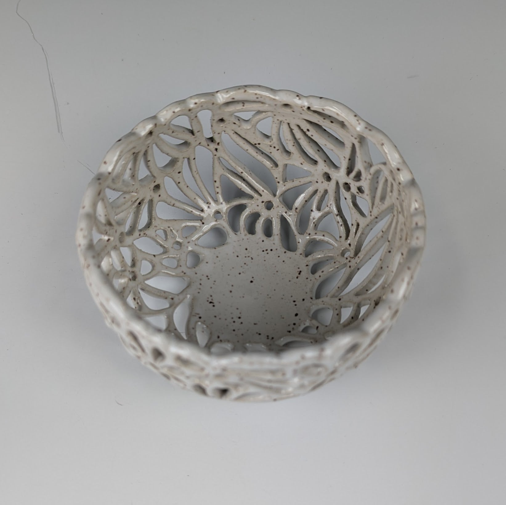 This little bowl is one-of-a-kind, each hole carefully pierced out with a sharp knife.