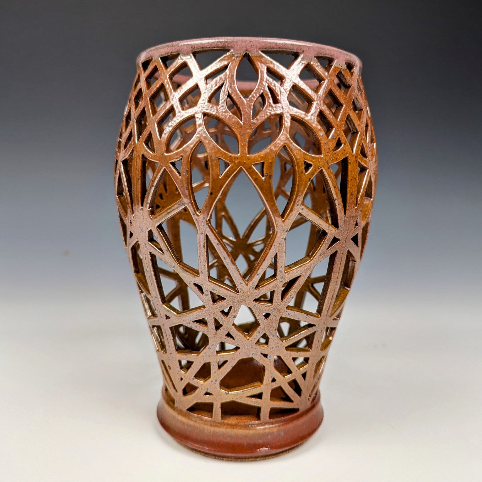 This vase is hand-pierced and can be enjoyed with a dried arrangement or simply as it is.